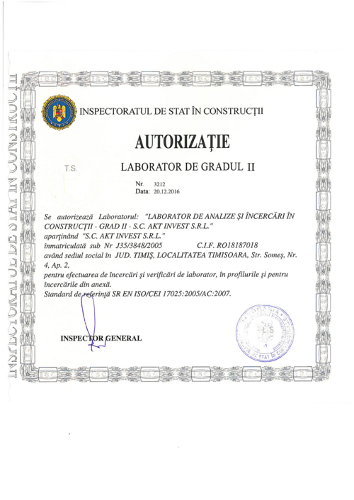 Autorizatie Laborator de analize si incercari in constructii.